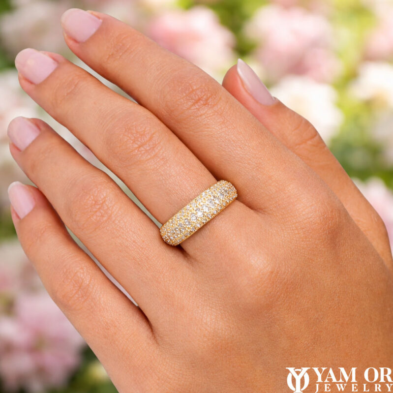 טבעת עם חריטת שם בעיצוב אישי עם אבנים