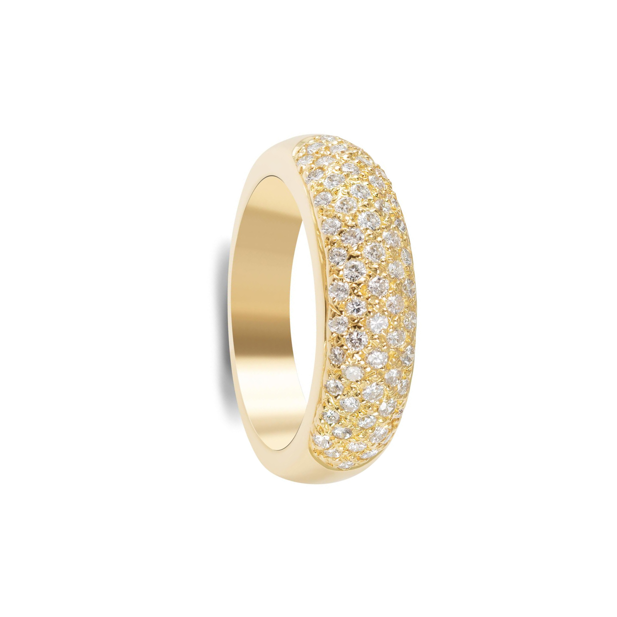 - היהלומים משובצים בצפיפות, אחד ליד השני, בצורה שיוצרת שטיח נוצץ ומרשים – מראה “פאווה” יוקרתי ועשיר.