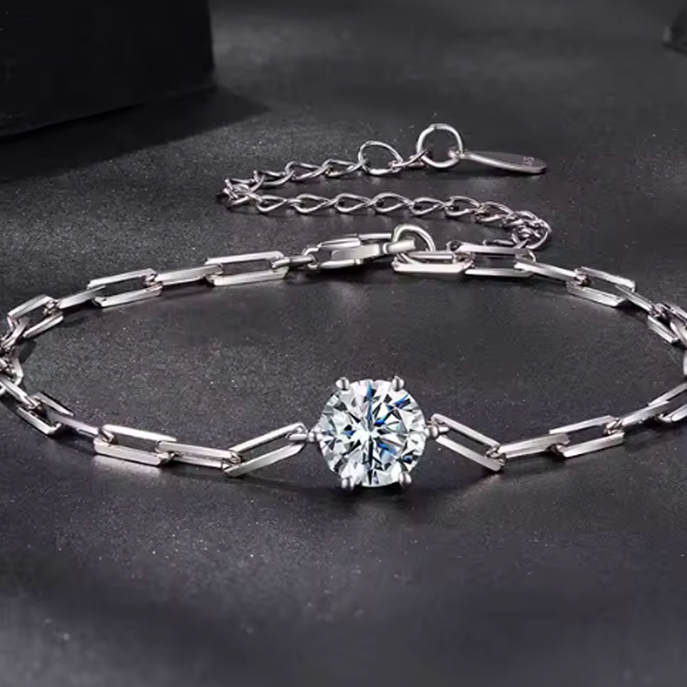 צמיד כסף 0.925 עם אבן Moissanite 1CT – יוקרה עדינה ונשית