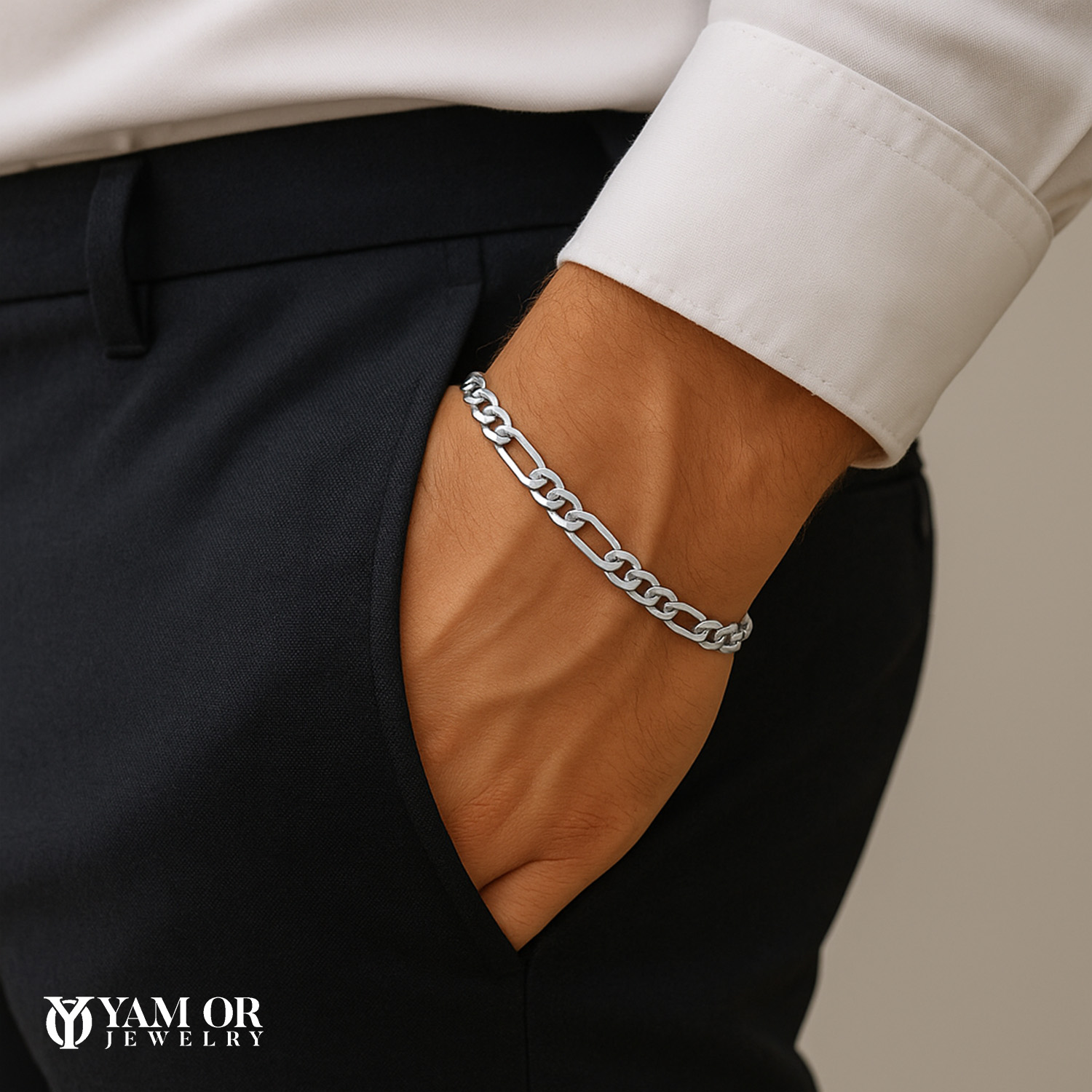 הוא משתלב בקלות עם שעון, צמיד נוסף או בפני עצמו, ויוצר מראה של ביטחון עצמי, סגנון וטעם יוקרתי נקי.